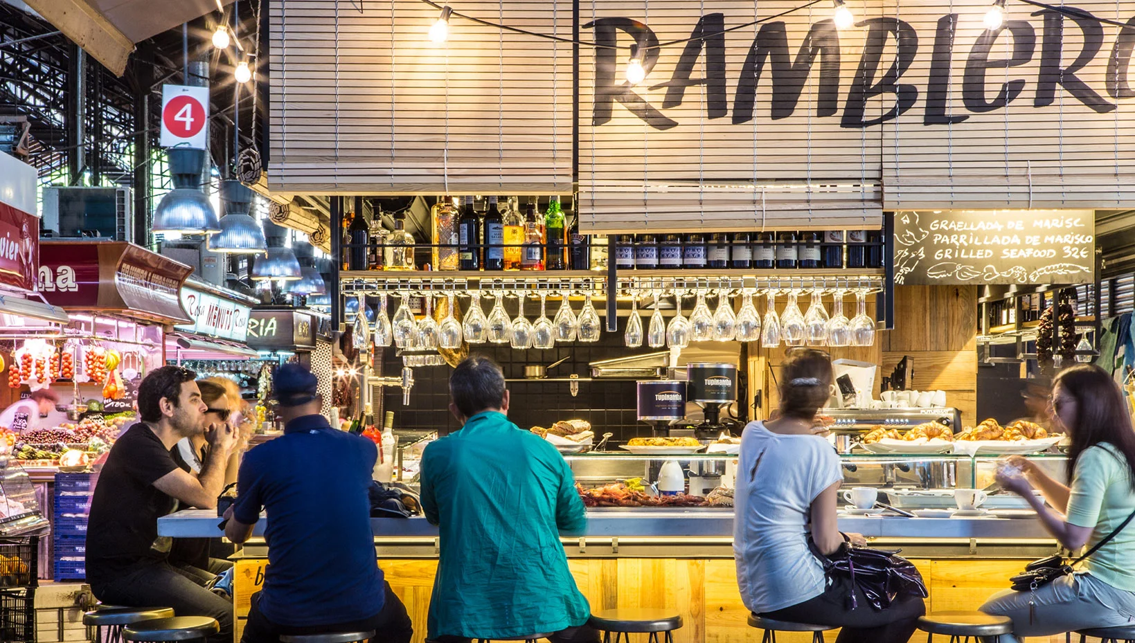 Disfruta de una comida memorable en Las Ramblas, en la misma entrada de un mercado con más de un siglo de historia.